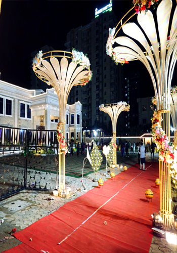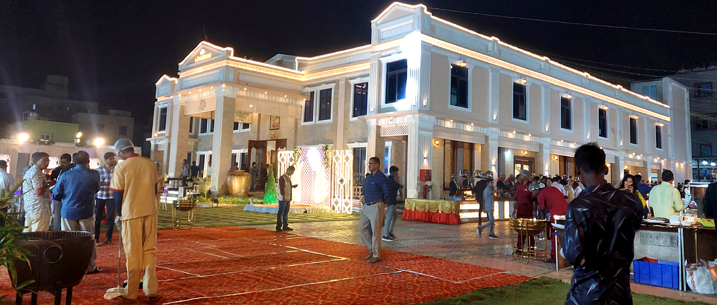 Comprehensive Amenities: We provide a full suite of services including in-house catering with customizable options (or the flexibility to engage external caterers), Kitchen, Food court, sprawling lawn, open spaces, modern handwash facilities, pristine washrooms, and ample parking for you and your guests’ convenience.